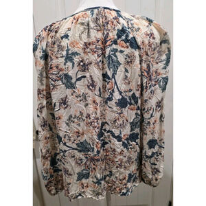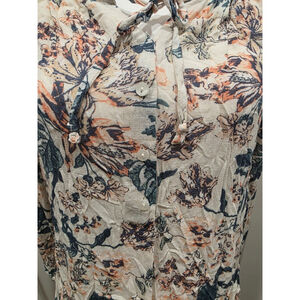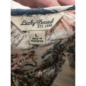 Lucky Brand Light Weight Mixed Floral Print Half Button Tie Front Blouse Size L