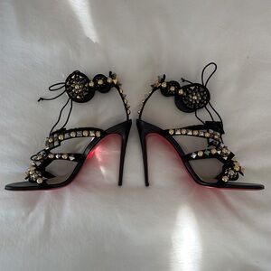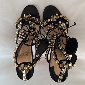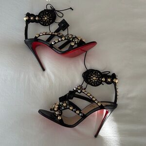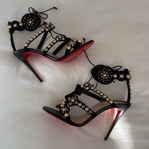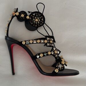 Brand New Christian Louboutin Kaleikita studded leather lace up sandals in black. Size 39. These sandals are absolutely stunning! Very hard to find.