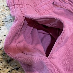 Nike women’s mauve joggers in size Medium in good used condition. Very comfortable with loose fit. Comes from a smoke free home. Approximate measurements laid flat are waist 15 inches, rise 11 inches, inseam 27 inches.
