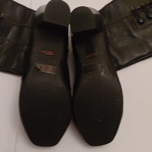 Elegant black knee-high boots by Clarks. Features button accents. Versatile and chic. heel height 2.5". Size 8.5 W. preowned. Great condition. Zipper closure and side buttons. These boots extend along the calfs with some side elastic. Fast shipping.