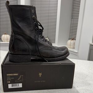 Classic Frye boots with a rugged leather finish. Lace-up design for a secure fit. Ideal for versatile wear.