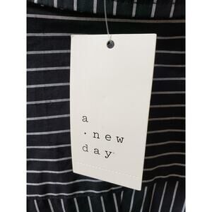 A New Day Dress Women L Black White Striped Shirt Long Sleeve Cotton Midi