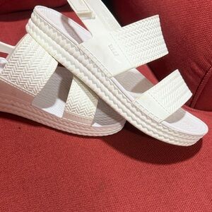 Nike sneakers featuring a sleek white design. Green heel tab and orange logo add vibrant touches.