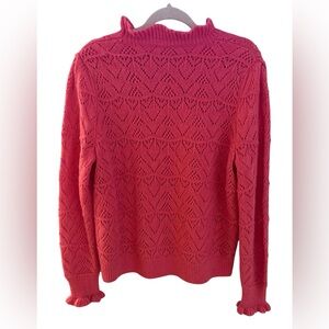 Sundance Sweater Womens XL Pink Pointelle Knit Mock Neck Ruffle Cuff Wool Blend