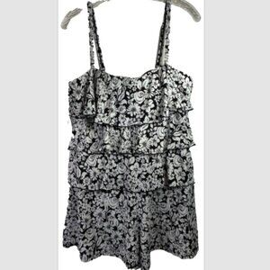 A Shore Fit Swim Dress 14 Black white floral tiered modest one piece panel