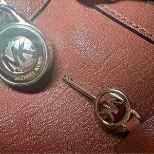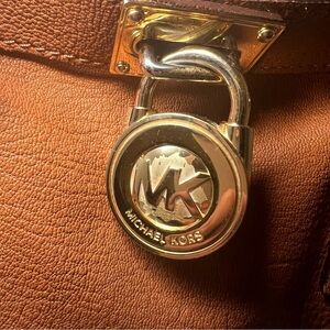 MICHAEL KORS Hamilton Medium Lock and Key Leather Bag Satchel/Shoulder Bag Brn