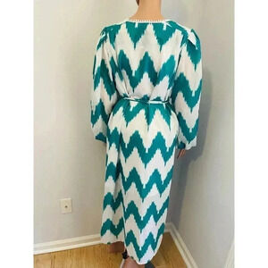 Tuckernuck Beulah Style Charlotte Chevron Printed Midi Dress Green size L