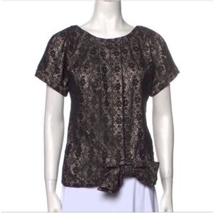 Marc by Marc Jacobs shirt black beige brocade lace metallic bow XS