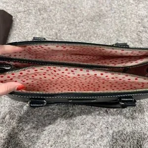 Kate spade black satchel. Never used . Wide with a lot of space . Two zip pockets with main magnetic closure . Dust bag included