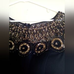 Step out in style with this elegant black dress, featuring exquisite embellishments. Perfect for any occasion.