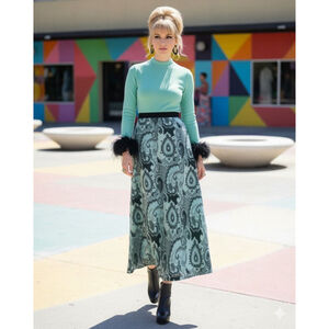 Classic and structured, textured woven fabric, fully lined, this navy Petite Sophisticate blazer embodies the sharp, confident tailoring of the late 80s/early 90s. Featuring a dagger sculpted collar, tailored waist, and statement ornate metal gold swirl buttons, it’s a piece that channels both elegance and authority.
