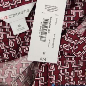 NWT Liz Claiborne Burgundy Geometric Long Sleeve Button-down Belted Dress Size M