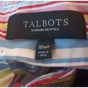 This Talbots Women's Skirt is a colorful and classic piece that is perfect for the preppy style. The pleated design adds a touch of elegance to the knee-length skirt, which is made from a comfortable blend of spandex and cotton. The skirt features a multicolor striped pattern, making it a versatile option for any wardrobe. It is available in plus size 18WP, catering to women looking for a full and flattering fit. The Talbots brand ensures quality and style in this wardrobe staple.