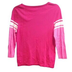 The Eddie Bauer Sweater Lot Of 2 is a stylish and versatile addition to any wardrobe. This set includes two lightweight sweaters in a vibrant pink and yellow striped pattern, perfect for various occasions such as parties, casual outings, and business meetings. Made from a blend of nylon and cotton, these sweaters feature a tight-knit construction with a crew neck and 3/4 sleeves, offering a comfortable and flattering fit. With the Eddie Bauer logo accent, these pullover sweaters are ideal for the winter, fall, and spring seasons, making them a practical and fashionable choice for women in petite and medium sizes.