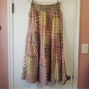 LIVERPOOL LOS ANGELES Tiered Geo Patchwork Boho Maxi Skirt Size Large NWT
