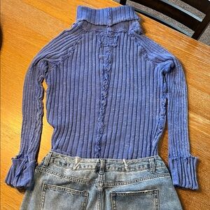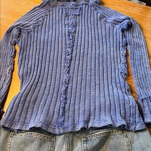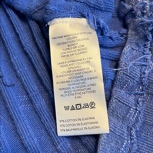 Gently worn a couple of times this washes and drys beautifully. It’s in like new condition and The blue is beautiful and the measurements are in the photos.