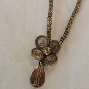 16 in. bronze copper seed beads with flower Dangle Charm.