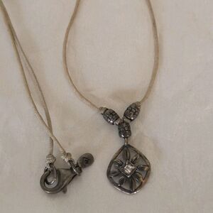 16 in. Dainty Silpada flower charm Necklace. Beige cloth cord. Crystal accent.