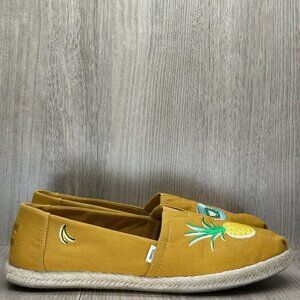 TOMS Shoes Womens 10 Spice Gold Embroidery Fruit Salad Classic Espadrille Yellow Very good pre-owned condition. Please refer to pictures for condition and measurements. All items are stored in a pet-free, smoke-free environment. Items typically ship next business day. Sold as pictured, thank you for looking. Our SKU: 04SH99-25