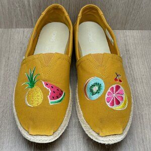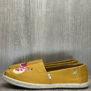 TOMS Shoes Womens 10 Spice Gold Embroidery Fruit Salad Classic Espadrille Yellow