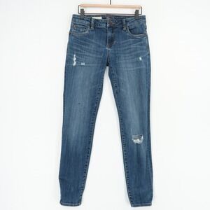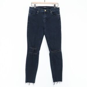 AGOLDE Riley High Rise Straight Crop Jeans Womens 29 Blue Raw Hem Button Fly