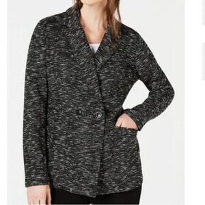 Eileen Fisher Double Breasted Tweed Knit Notch Collar Marled Button Blazer XL
