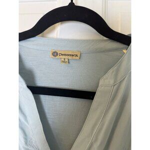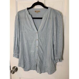 Democracy Embroidered 3/4 Sleeve Heather Muted Blue Small Blouse - Flawed