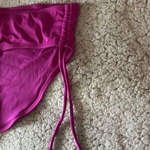 The bottoms are high-waisted with optional ties to pull and decrease fabric on the hips giving you a high-rise hip feature