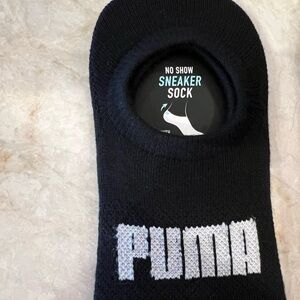 Women's Puma no-show sneaker socks. 3 pairs black, 1 pair white. Size 5-9.5. Never worn.