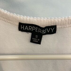 Harper and Ivy Embroidered Cherry White ribbed Stretch Tank Top sz small