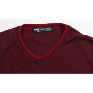 Helly Hansen Burgundy Wool V-Neck Knit Sweater Men's Medium