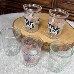 Vintage 5pc Country Cow Country Pig Glass Set