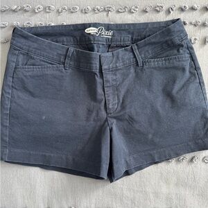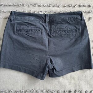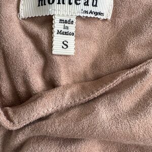 Chic long sleeve tee with tan and navy stripes. faux suede detail on collar and elbows. Ideal for casual wear. Shirt is size small. Shorts are navy color and size 4