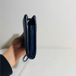 Pre-owned. In great condition. Lightly worn. Includes 2 double zip pockets, one interior button snap slip pocket, 3 slip pockets, and 7 credit card slip pockets.