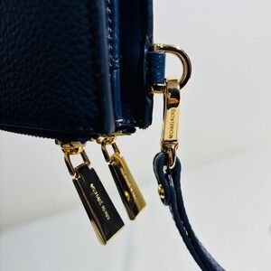 Michael Kors Women's Jet Set Travel Double Zip Leather Wristlet Wallet Navy