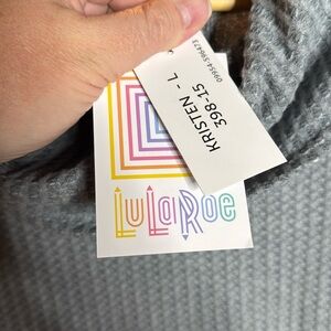 Embrace the cozy elegance of this LuLaRoe sweater, featuring a soft gray ombré hue and a stylish cowl neckline. Its relaxed fit and chunky knit texture make it an ideal choice for casual fall outings. The sweater's hip-length design and dropped shoulders add to its comfortable appeal.