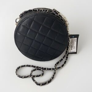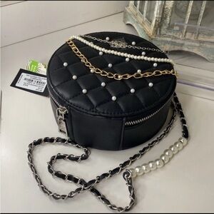 Badgley Mischka Black Mini Quilted Round Crossbody W/ Pearls NWT