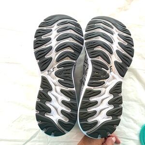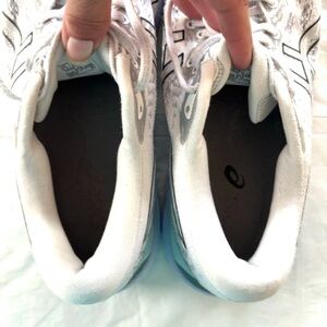 Worn Once on Carpet. Very Clean soles. See All Photos for best Description. See mark on left sneaker where I pointed it out. THESE ARE WASHABLE! Spray & Wash would get mark out. Sleek ASICS Gel Cumulus 23 shoes. Perfect for running and casual wear. Feel free to ask questions. S304