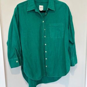 Elegant A-line skirt featuring a button-down front. Elastic waistband for comfort. Ideal for any occasion.