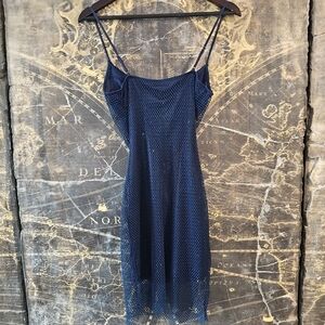 Windsor Royal Blue Rhinestone Fish Net Dress Party Cocktail