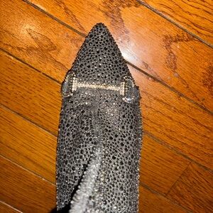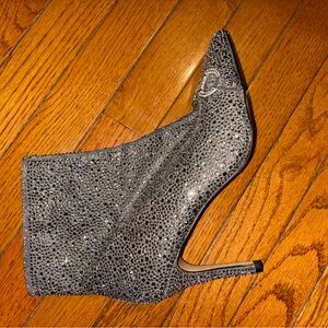 Shimmering silver boots with rhinestone embellishments. Sleek pointed toe and stiletto heel. Perfect for a glamorous look. Worn twice but in good condition.