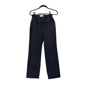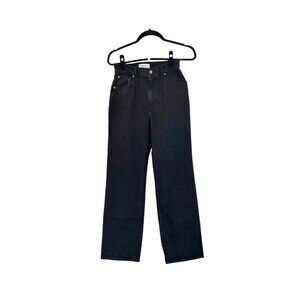 Abercrombie & Fitch Black Wash 90s High Waisted Tonal Topstitching Flat Front Classic Five Pocket Styling 90s Relaxed Jean Denim Size 26 - Excellent condition.