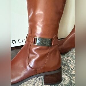Etienne Aigner brown leather tall riding boots 9.5