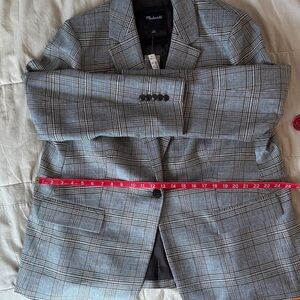 Beautifully tailored jacket with fully functional 5-button cuffs for ease, center back plaid nicely matched