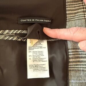 Gorgeous glen plaid made of Italian fabric, pattern has espresso brown, black, tan, with a fine line of light blue running through it