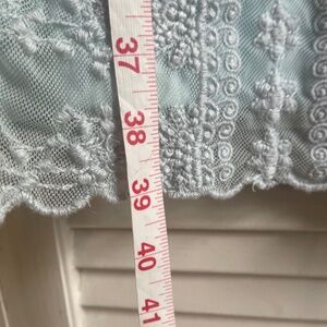 This dress features short sleeves and an intricate embroidery throughout the body and sleeves. The outer layer is a sheer mesh with a lining underneath. The outer layer has strap holders for the liner that are removable which makes getting the dress on a breeze. The embroidery is in perfect shape no snags anywhere.