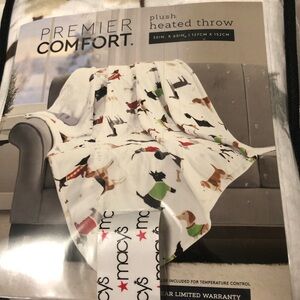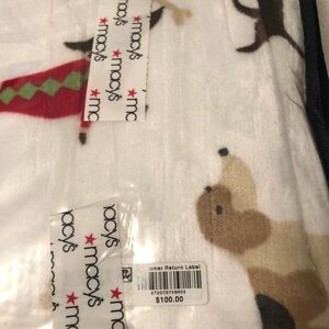 White Blanket with Dog and Christmas Tree Print