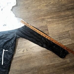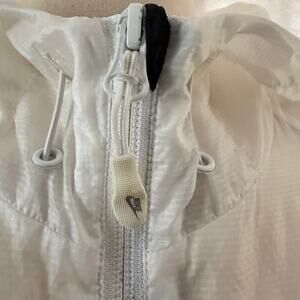 Jacket features lightweight 100% nylon shell, with full front zipper, adjustable drawcord hem, and two zippered side pockets. Color blocking in black and white with 2012 Tracktown graphic on chest, Nike Sportswear logo, and large USA Olympic rings logo on the sleeve.