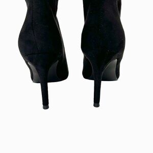 Sleek & sophisticated Kimari tall black ultrasuede boots from Steve Madden! New with bottom portion of orig. box included. Pointed toe, chic stiletto heel, taller boot that comes to around top of the knee. New condition.