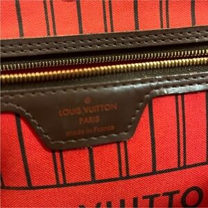 Auth Louis Vuitton Neverfull MM tote in Damier Ebene canvas with natural cowhide trim, it is roomy but not bulky
